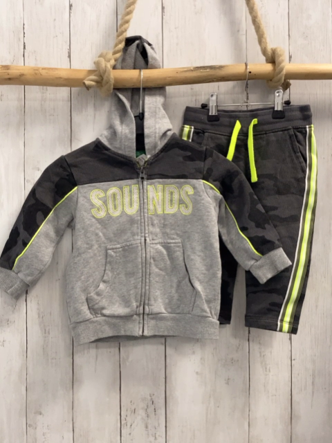 2tlg Benetton Jogginganzug Gr. 92 hellgrau grau + schwarze gemustert Kapuze Schrift mit hellgrünem Bund