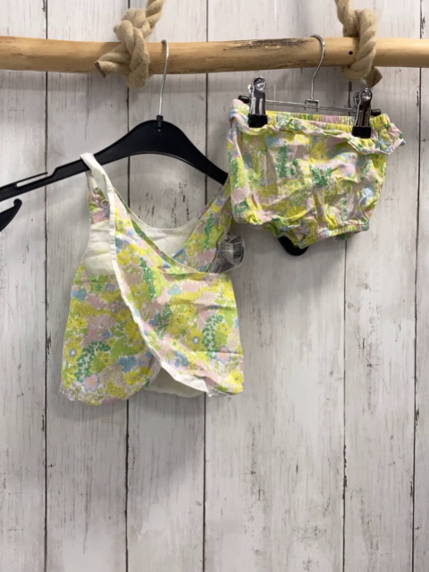 2tlg Jacadi Sommerbluse + Shorts Gr. 68 weiß hellgrün gelb hellblau rosa Blumen