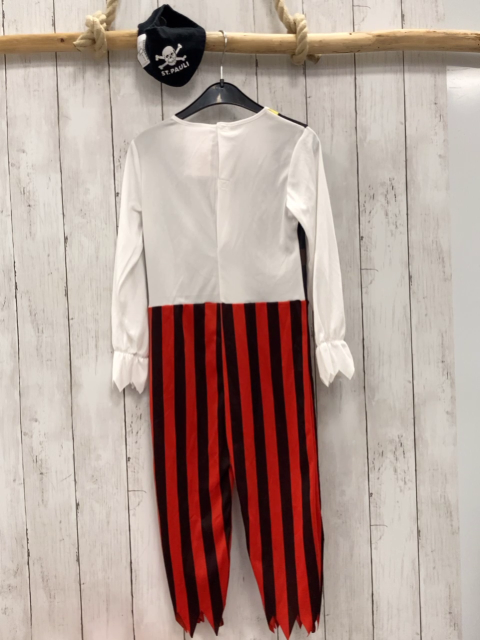 2tlg Karnevalkostüm Gr. 110 weiß + rot schwarz gestreifter Piratenoverall + schwarzes Tuch mit Totenkopf