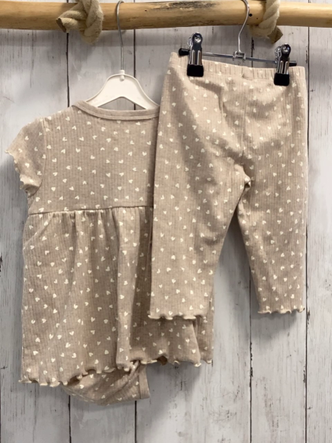 2tlg Kleid + Leggings Gr. 74 beige Rippen Bodyunterteil weiße Herzen