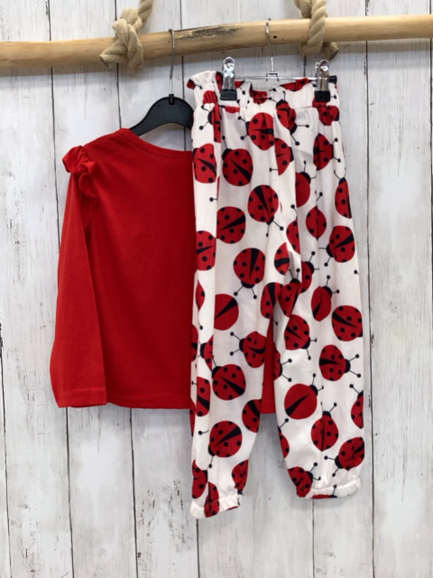 2tlg Langarmshirt + Jogginghose Gr. 98 rot Schrift + weiß Marienkäfer