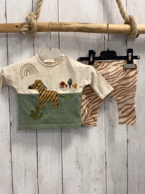 2tlg Next Langarmshirt + Leggings Gr. 62 beige kiwi Zebra + beige braunes Fellmuster