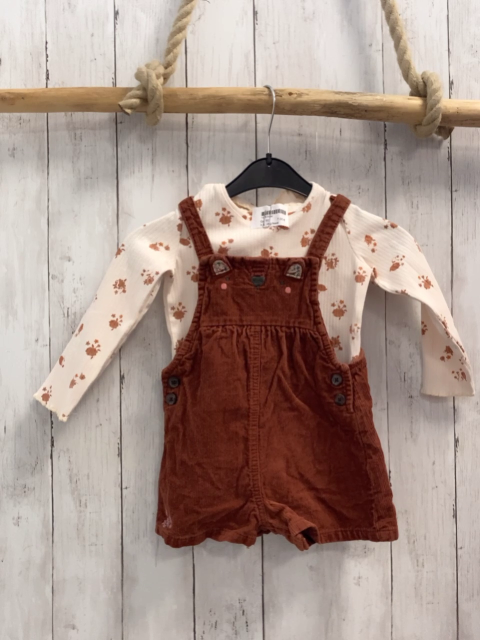 2tlg Next Latzshorts + Langarmshirt Gr. 92 ceme Rippen + braun Kord