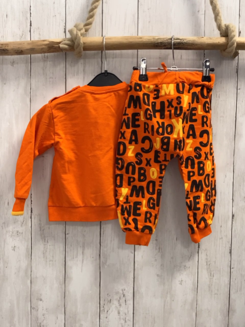 2tlg Pullover + Jogginghose Gr. 80 orange Hund schwarz gelbe Buchstaben