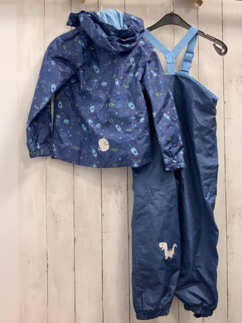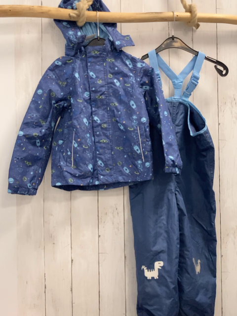 2tlg Regenanzug Gr. 110 blau hellblau Raketen Sterne ua