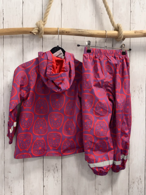 2tlg Regenanzug Gr. 98 lila rote Eulen