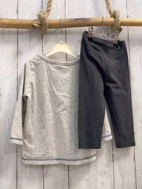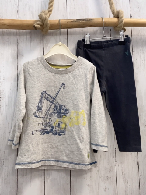 2tlg Sanetta Schlafanzug Gr. 92 hellgrau Bagger Kranwagen + grau