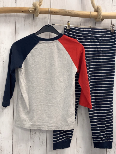 2tlg Schlafanzug Gr. 110 grau Feuerwehr Schrift blau/roter Ärmel + blau weiße Streifen