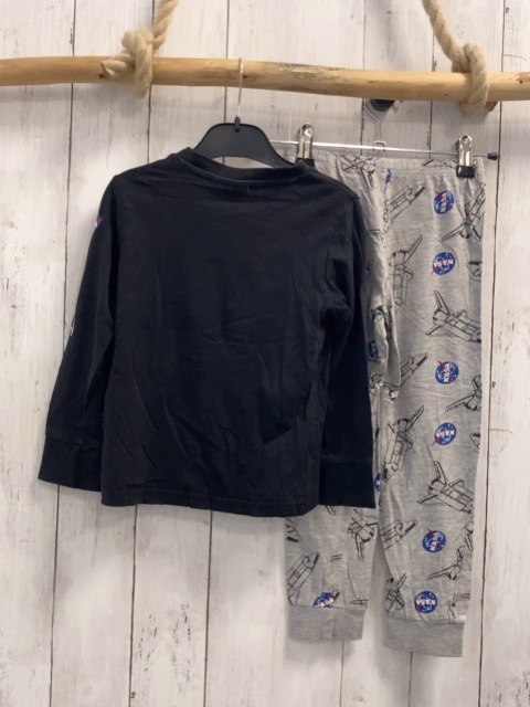 2tlg Schlafanzug Gr. 116 schwarz grau Raketen Schrift Nasa