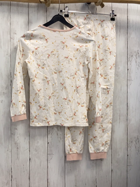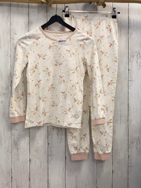 2tlg Schlafanzug Gr. 122 weiß Einhörner rosa Bund
