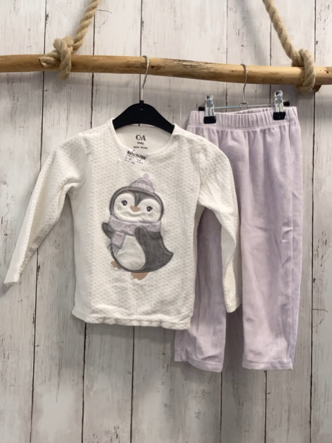 2tlg Schlafanzug Gr. 92 weiß Punguin + Flieder Nicky