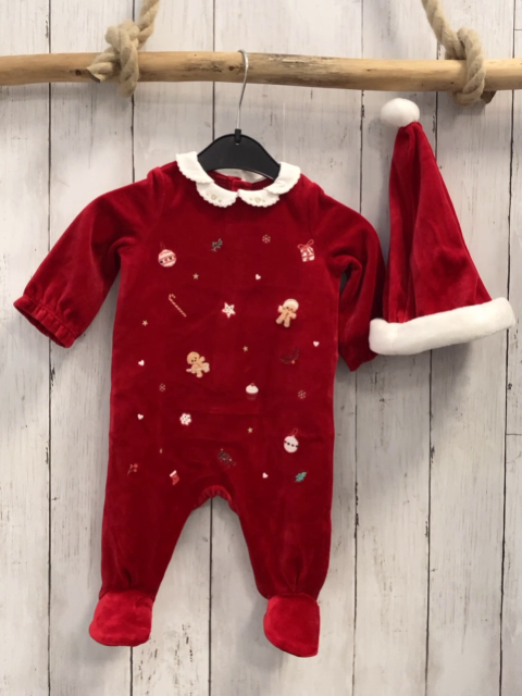 2tlg Sergent Major Strampler + Mütze Gr. 56 rot Nicky Weihnachtsmotive weißer Kragen