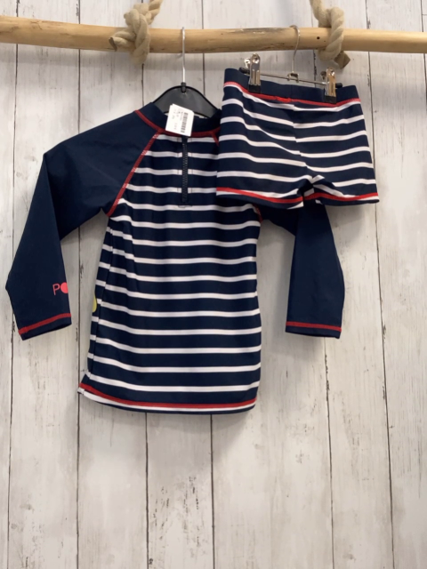 2tlg UV-Schutzset Gr. 98 blau weiße Streifen rote Nähte Winnie Puuh