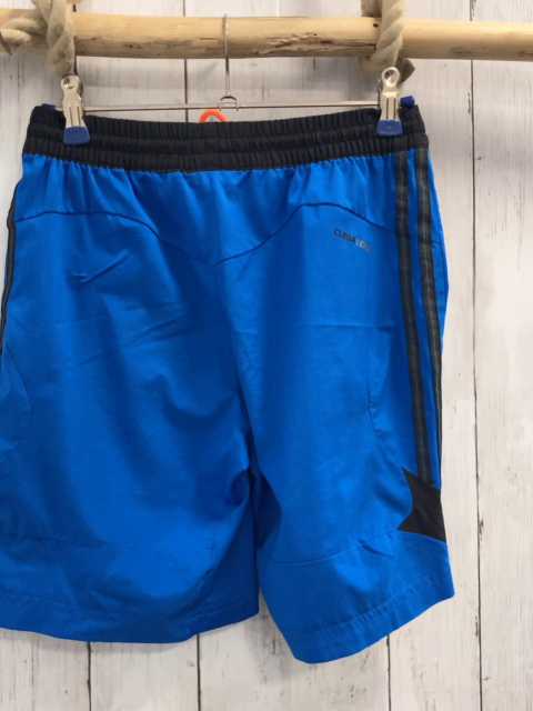 Adidas Sportshorts Gr. 140 blau schwarzer Bund orange Schrift + Label