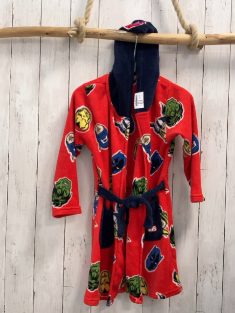 Bademantel Gr. 110 rot Plüsch Avengers blauer Bund + blaue Kapuze