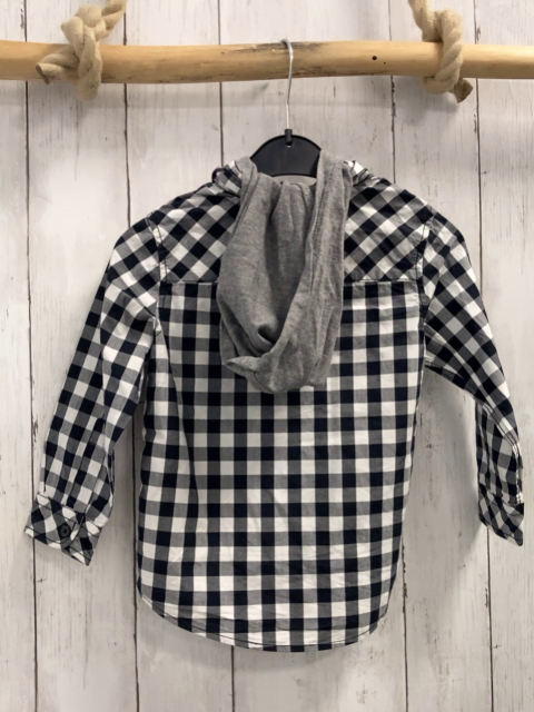 Benetton Hemd Gr. 92 schwarz weiß kariert graue Kapuze