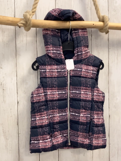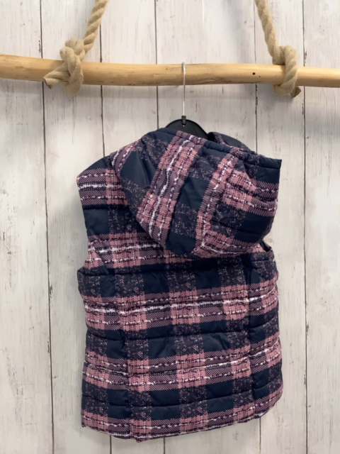 Benetton Weste Gr. 116 grau altrosa weiß kariert Kapuze silber Reißverschluss