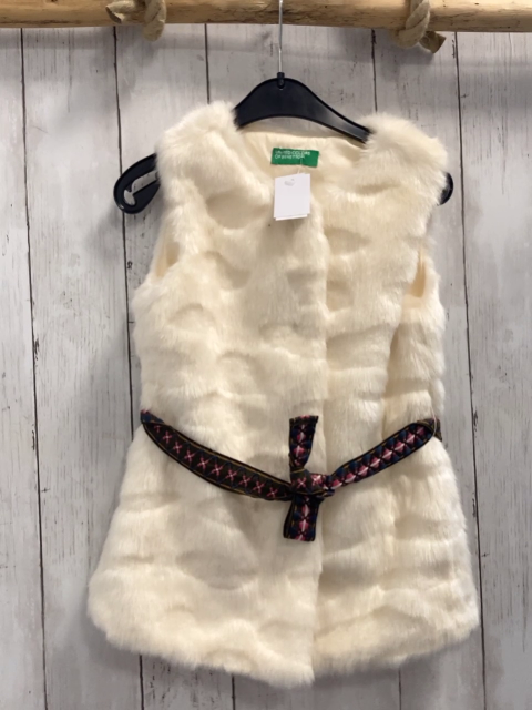 Benetton Weste Gr. 122 weiß Plüsch Gürtelband