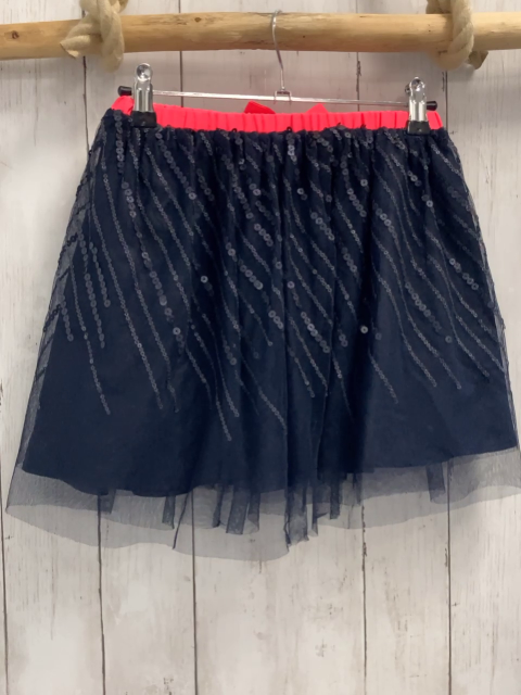 Billieblush Rock Gr. 134 blau Tüllüberrock mit glänzenden Pailetten neonroter Bund mit Schleife