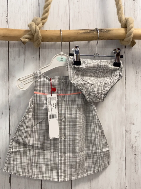 Boboli neu 2tlg Kleid + Höschen Gr. 62 grau weiß kariert aprikot Schleife