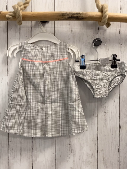 Boboli neu 2tlg Kleid + Höschen Gr. 74 grau weiß kariert aprikot Schleife