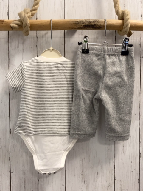 Boboli neu 2tlg T-Shirt + Hose Gr. 74 grau weiß gestreift Katze Bodyunterteil + grau Frottee