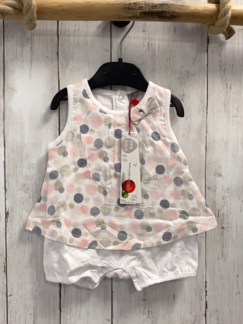 Boboli neu Playsuit Gr. 62 weiß beige rosa blau Kreise aus Strichen