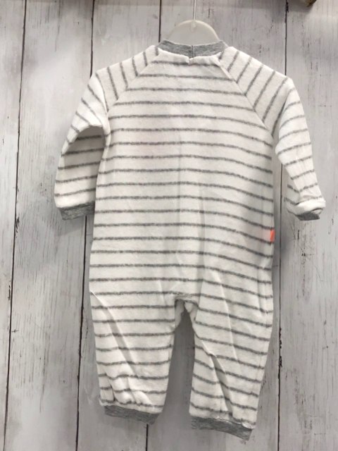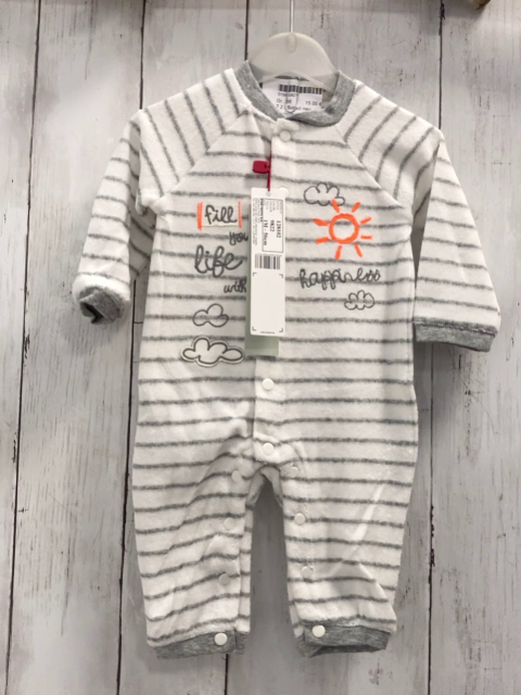Boboli neu Strampler Gr. 62 weiß graue Streifen Schrift Frottee