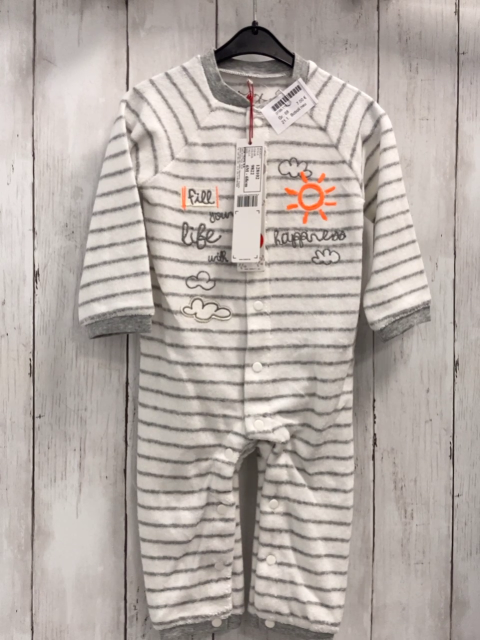 Boboli neu Strampler Gr. 68 weiß graue Streifen Frottee