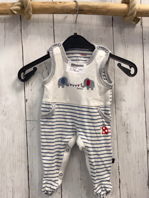 Bornino Strampler Gr. 50 weiß blaue Streifen Elefanten