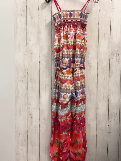 Desigual Jumpsuit Gr. 146/152 weiß rot bunt Blumen Rauten gesmoktes Oberteil