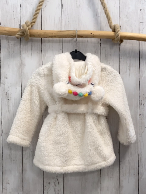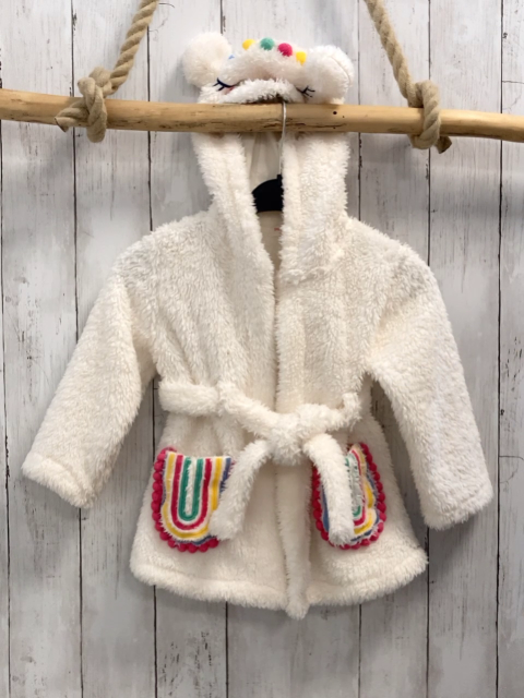DP...aM Bademantel Gr. 98 weiß Plüsch lama bunte Taschen