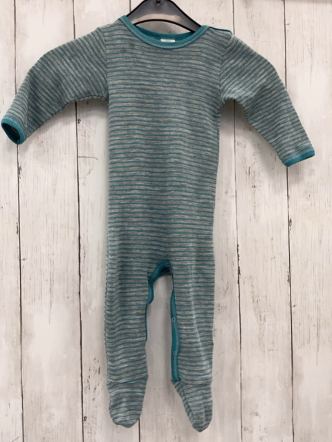 Engel Schlafanzug Gr. 68 grau türkis Streifen 70 % Schurwolle 30 % Seide
