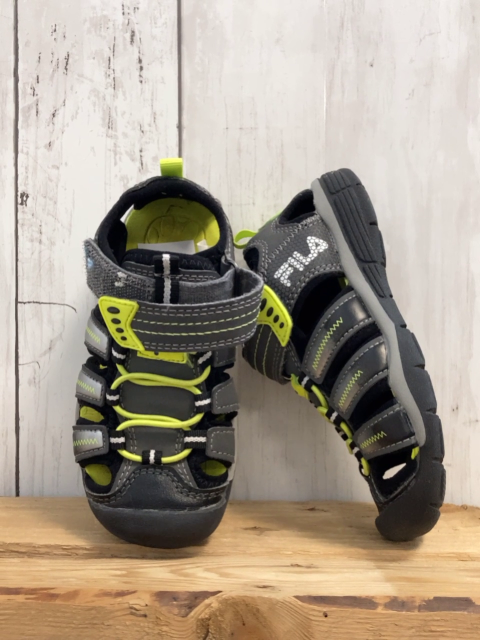 Fila Halbsandalen Gr. 26 grau hellgrüne Schnürsenkel weiße Schrift