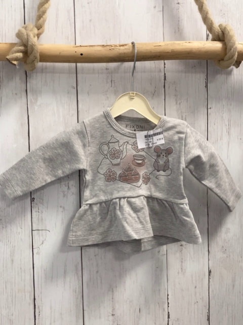Fixoni Langarmshirt Gr. 56 hellgrau Maus Kaffeeservice