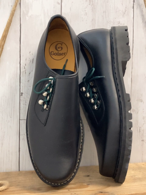 Goiser Trachtenschuhe Gr. 43 schwarz seitliche Schnürung mit grünem Schnürsenkel