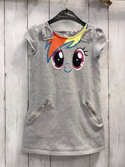 H&M Kleid Gr. 110 grau Tiergesicht mit Glitzer silber Reiverschlüsse