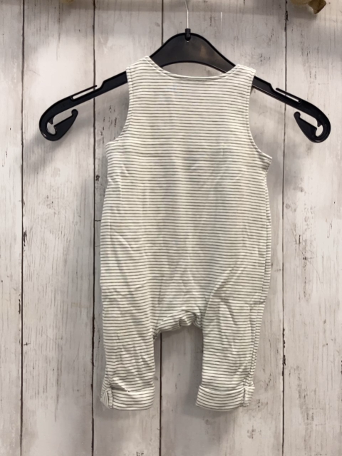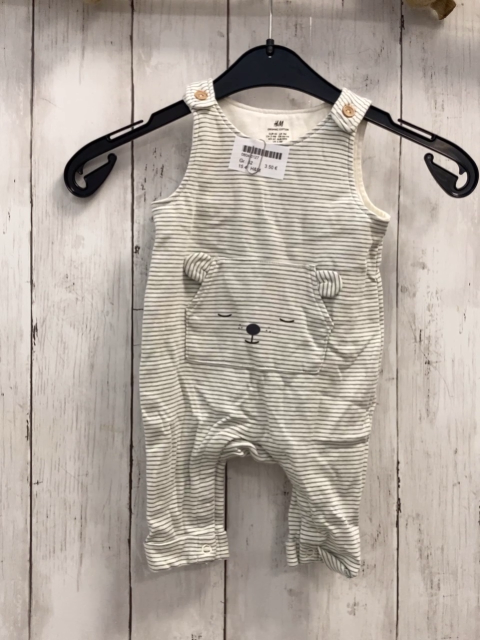 H&M Latzhose Gr. 62 weiß oliv Streifen Brusttasche mit Bärenkopf