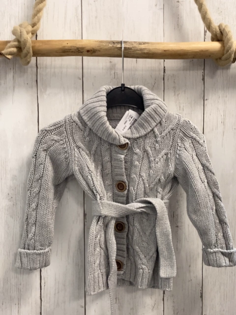 H&M Strickjake Gr. 80 hellgrau Zöpfe mit Gürtel