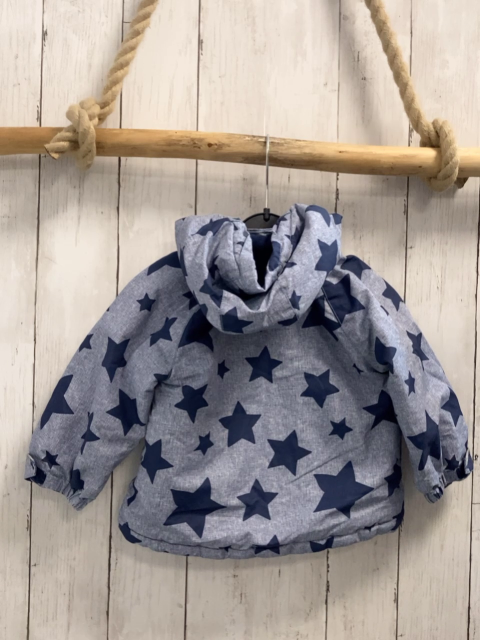 H&M Winterjacke Gr. 74 hellgrau hellblau meliert blaue Sterne blaues Fleecefutter