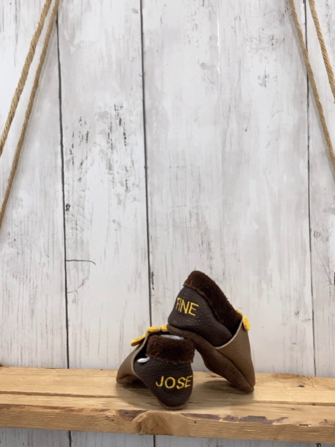 Hausschuhe Gr. 19 braun hellbraun Leder Giraffe