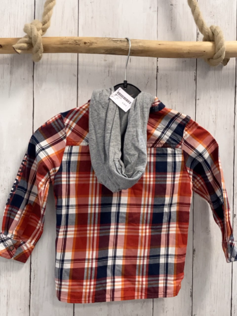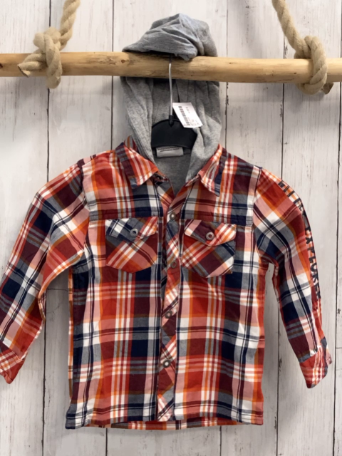 Hemd Gr. 92 rot orange grau weiß kariert graue Kapuze