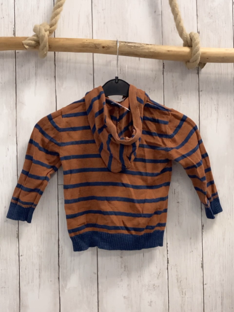 HM& Pullover Gr. 86 rotbraun blaue Streifen Strick Kapuze Bauchtasche