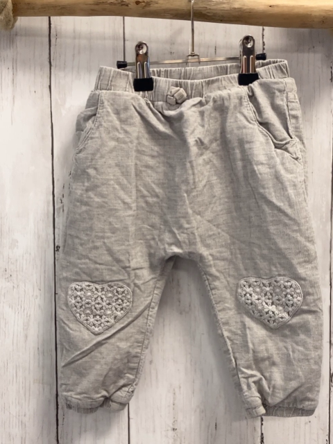 Hose Gr. 86 grau Kord gefüttert Häkelblumen am Knie