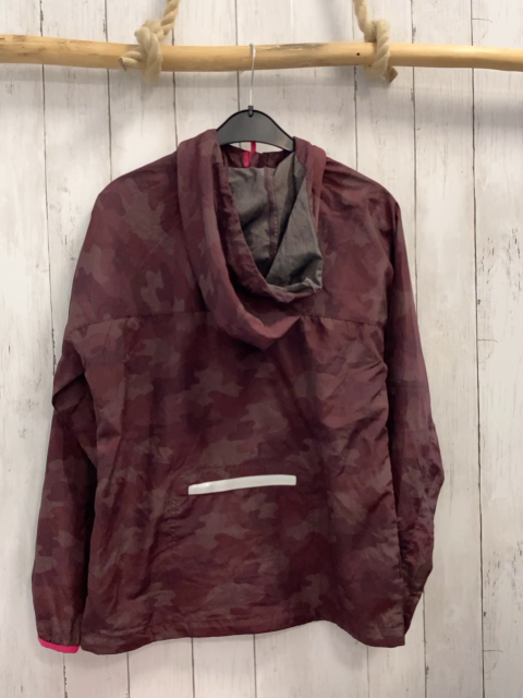 Jacke Gr. 158/164 weinrot aubergeine gemustert Kapuze pink silber Bund am Reißverschluss