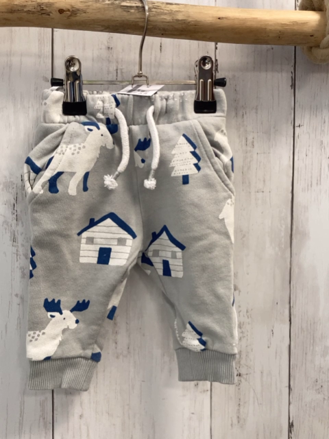 Jogginghose Gr. 62 hellgrau Häuser Tannen Hirsche