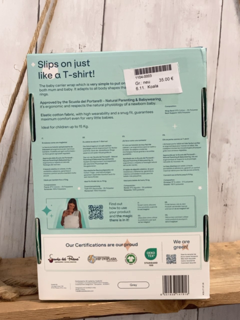 Koala Babytragetuch Koala Cuddle band 2 hellgrau schwarzer Stoff