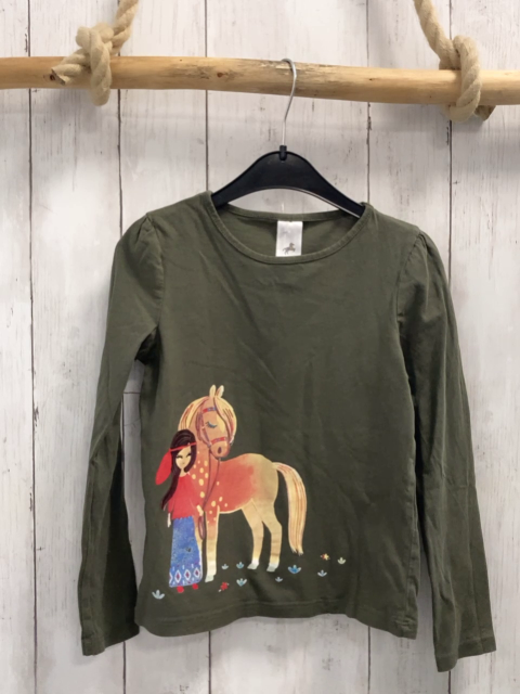 Langarmshirt Gr. 122 oliv Pferd + Mädchen