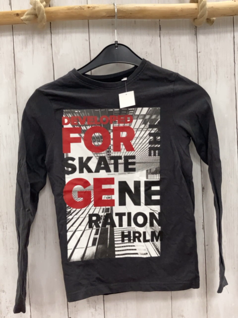 Langarmshirt Gr. 134/140 grau Hochhäuser rot schwarze Schrift