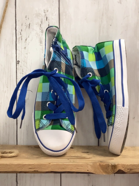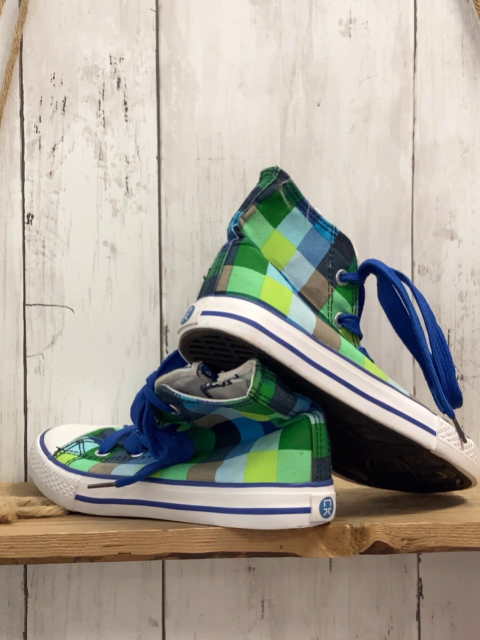 Leinenboots Gr. 32 hellgrün grün brauun hellblau blau kariert weiße Sohle